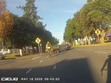 Cycling along Cameron road in the cycle lane, cyclist in front has to swerve to avoid grey Nissan Kingcab. the Ute pulls out into the path of the cyclist and due to traffic is not able to complete the manoeuvre and blocks the path for the other cyclist and I. I pull up to the drivers side, try to tap on the wingmirror to get drivers attention (it folds back on itself) driver turns holding phone in left hand to ear (smartphone - unsure of brand, in blue case) the female driver, 40's blond hair then gesticulates at me (didn't see fully as over my shoulder) revs engine and starts to swerve towards me. I pull away and she backs off and I return to the cycle lane. She drives erratically into the cycle lane between myself and the other cyclist before driving away. (excerpt from police report)