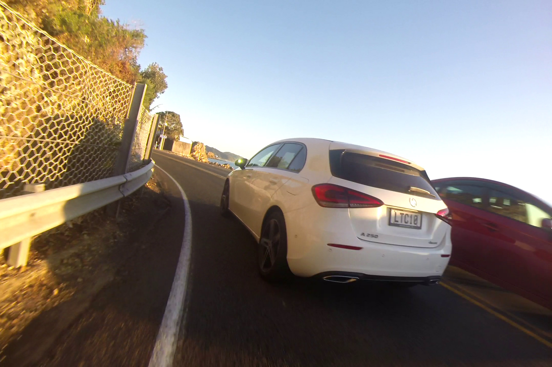 Driver passed in blind left corner with double yellow lines and came dangerously closely as another vehicle come towards us.