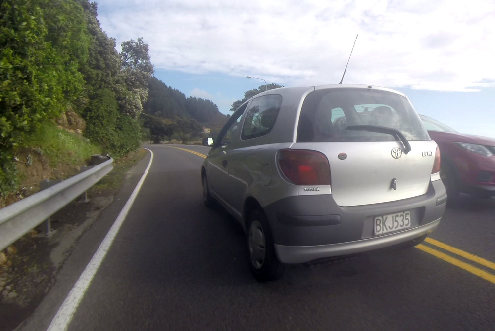 Driver passed in blind left corner with double yellow lines when oncoming traffic forced them to the left, almost running my off the road